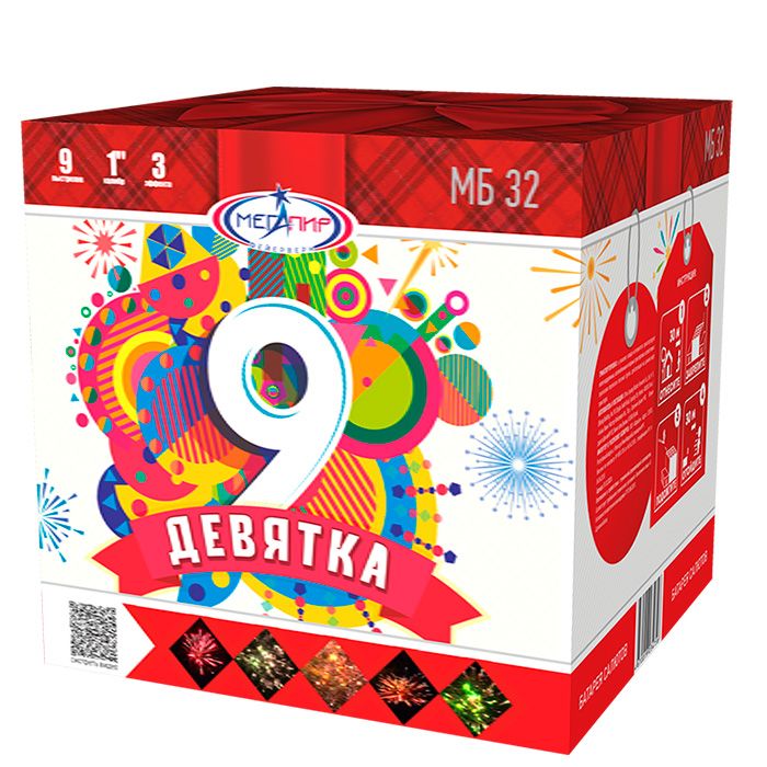 Количество залпов/калибр: 9/1. Время работы до 20 сек. Высота подъема до 30 м. Эффекты: красный кокос, дождь; золотой кокос, дождь; зеленый кокос, дождь.