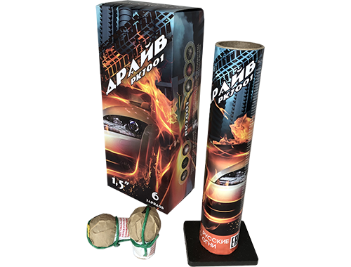 Эффект: 1) Белое мерцание с красным; 2) Большая трещащая хризантема; 3) Зеленый пион; 4) Красно-зеленый пион; 5) Красная волна; 6) Зеленая волна.