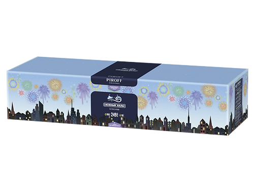 Эффекты: цветные мерцающие пионы; золотая парча; золотые пауки; свистящие змейки; мерцающая парча; серебряные змейки; алые лепестки; хризантемы с треском: зеленые пионы и трещащие жемчужины; зеленые сферы и золотые лепестки; треск и синие жемчужины; золотые лепестки и синие звезды; красные пионы с треском; золотые лепестки и красные звезды; ивы и серебряное мерцание; золотые ивы с треском; парча и золотой треск; золотой треск; золотые лепестки.